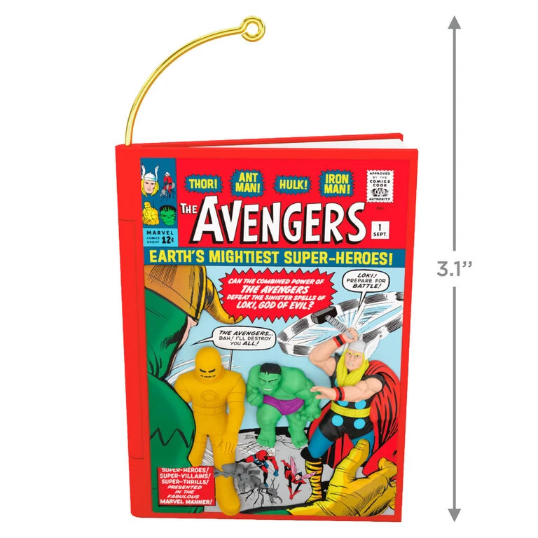 In 1963, Earth’s Mightiest Super Heroes assembled for the first time in the pages of the debut issue of The Avengers comic book. Now, 60 years later, this Marvel Comics classic comes to the Christmas tree in ornament form to celebrate a milestone anniversary. Founding members Iron Man, Thor, Hulk and Ant Man spring from the comic’s cover art to battle the sinister spells of Loki!